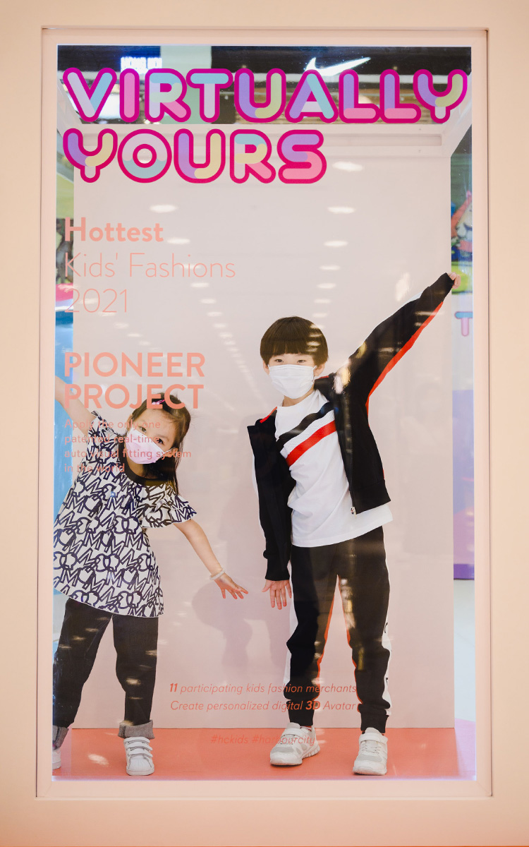 小朋友可即場即時虛擬自動試穿,並發揮無限想像力,選擇個人數碼立體人型的動作姿態、衣飾、背景及燈光,並轉化成個人化動畫短片珍藏留念,讓未來小主人翁率先體驗未來科技所帶來的消費樂趣。